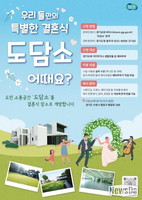 뉴스다 최광묵 기자 | 도민 소통공간인 ‘도담소’를 작은결혼식 공간으로 개방한 경기도가 1호 예비부부를 모집한다고 13일 밝혔다.