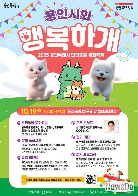 뉴스다 최광묵 기자 | 용인특례시는 지역 내 반려인들을 위한 문화축제 ‘2025 용인시와 행복하개’를 19일 용인시실내체육관 앞 천연잔디광장에서 개최한다고 13일 밝혔다.