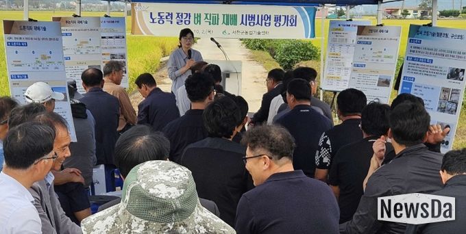 뉴스다 최광묵 기자 | 서천군농업기술센터는 지난 2일 서천군 화양면 고마리 일원에서 벼농사 생력화와 저탄소 농업실천 확대를 위한 ‘벼 직파재배 현장 평가회’를 개최했다.