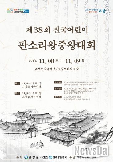 뉴스다 최광묵 기자 | 전북 고창군이 올해의 어린이 판소리 왕중왕을 가리는 ‘제38회 전국 어린이판소리왕중왕대회’ 참가자를 오는 11월7일까지 모집한다.