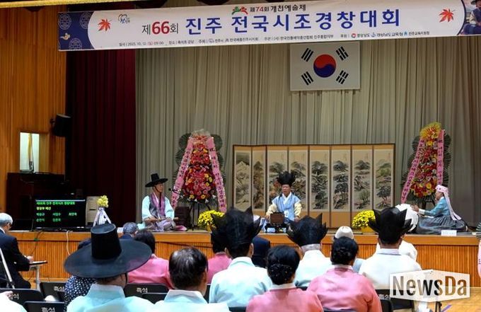 뉴스다 최광묵 기자 | 한국전통예악총연합회 진주통합지부는 지난 12일 촉석초등학교 강당에서 시조경창대회 참가자 및 관람객 등 300여 명이 참석한 가운데 ‘제66회 전국시조경창대회’를 성황리에 개최했다.