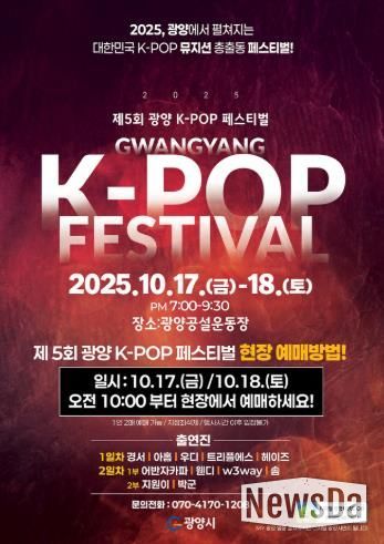 뉴스다 최광묵 기자 | 제5회 광양 K-POP 페스티벌이 오는 17일과 18일, 광양공설운동장 일원에서 전국 청소년 댄스 경연대회와 함께 화려한 라인업으로 성대하게 개최된다.