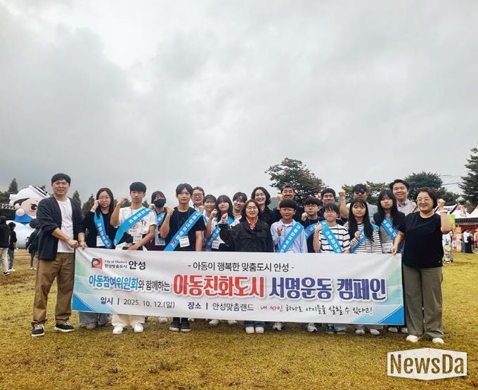 뉴스다 최광묵 기자 | 안성시 아동참여위원회는 바우덕이 축제 마지막날인 10월 12일, 아동친화도시 인증 추진을 위한 서명운동 캠페인을 진행했다.
