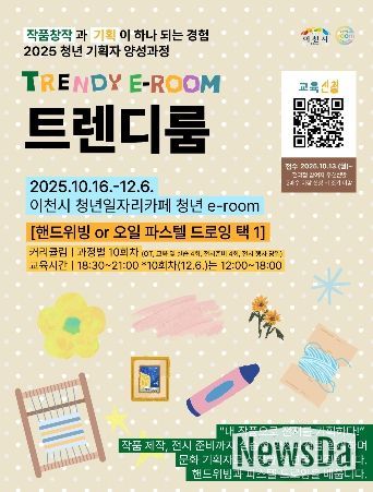 뉴스다 최광묵 기자 | 이천시는 이천 지역만의 트렌디한 콘텐츠를 발굴하고, 청년들이 지역 문화 생태계 안에서 성장할 수 있도록 촉진하는 ‘지역 청년기획자 양성 과정’ 수강생을 모집한다고 밝혔다.