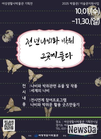뉴스다 최광묵 기자 | 여주시에서 진행하는 2025년 박물관·미술관 지원사업의 일환으로 여성생활사박물관의 ‘천년 나비와 박쥐 그곳에 들다’ 전시가 10월 1일부터 11월 30일까지 개최된다.