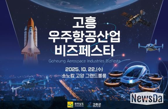 뉴스다 최광묵 기자 | 고흥군은 대한민국 우주항공산업의 중심지로서 미래 전략산업을 선도하기 위해 오는 10월 22일 경기도 고양시 소노캄 호텔에서 ‘2025 고흥 우주항공산업 비즈 페스타’를 개최한다고 밝혔다.