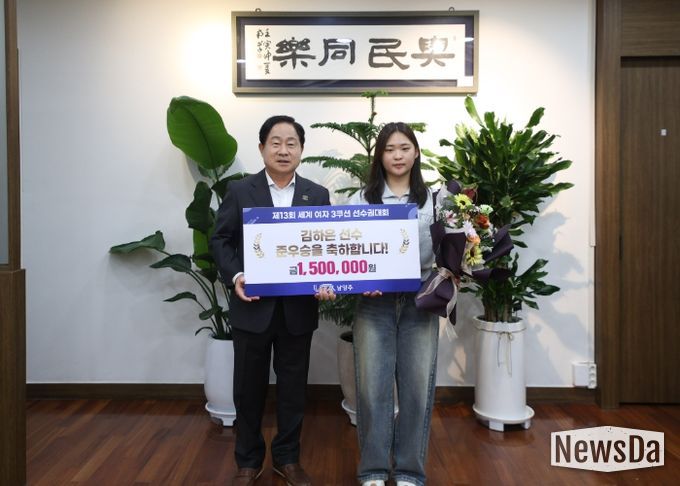 뉴스다 류대현 기자 | 남양주시는 10월 13일 시장 집무실에서 ‘제13회 세계 여자 3쿠션 선수권대회’ 준우승을 차지한 김하은 선수에게 포상금 150만 원을 전달했다고 밝혔다.