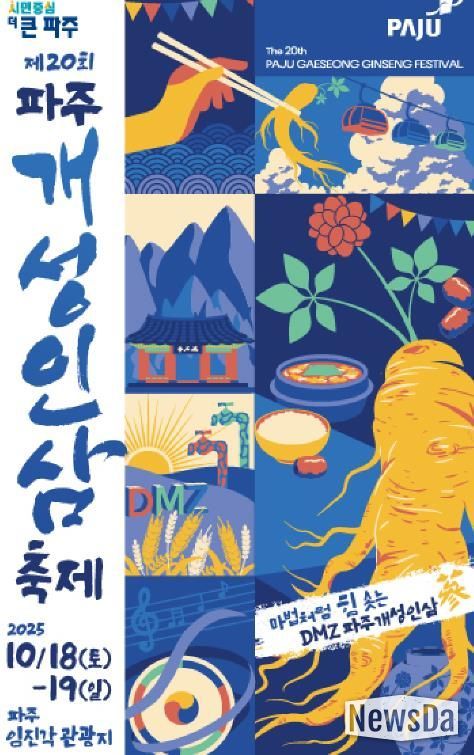 뉴스다 최광묵 기자 | 파주개성인삼축제가 오는 18일부터 19일까지 이틀간 임진각관광지에서 열린다. 특히 이번 축제는 체험과 먹거리 공간을 대폭 확장하고, 다채로운 프로그램을 마련하는 등 예년보다 풍성한 축제로 기획됐다는 게 파주시의 설명이다.