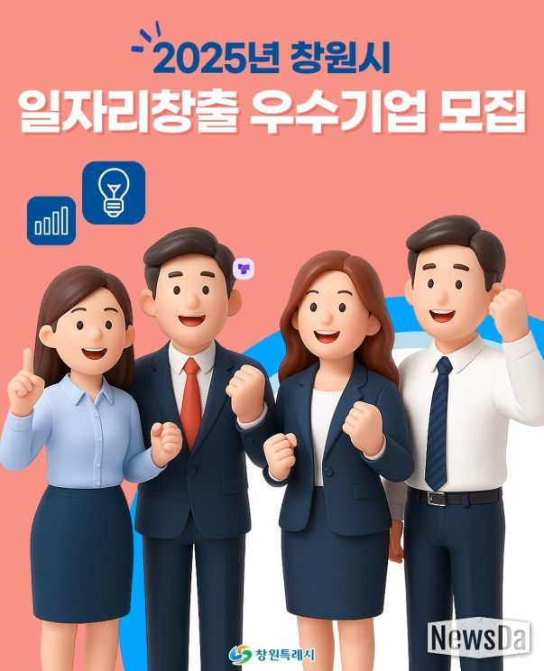 뉴스다 최광묵 기자 | 창원특례시는 10월 1일부터 24일까지 ‘2025년 일자리창출 우수기업’ 신청을 접수한다고 밝혔다.