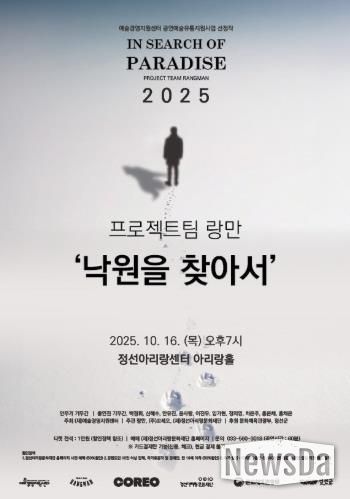 뉴스다 최광묵 기자 | (재)정선아리랑문화재단은 (재)예술경영지원센터의 ’2025 공연예술 지역 유통지원 사업‘을 통해 선정된 작품 중 마지막인 무용극 ’낙원을 찾아서‘를 오는 10월 16일 19시에 올릴 예정이다.