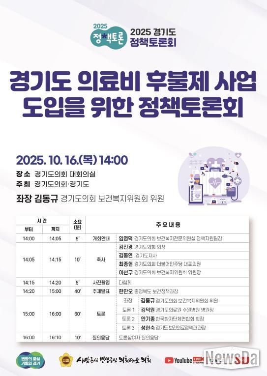 이번 토론회는 경기도의회와 경기도가 공동으로 주최하며, 의료비 부담 완화 및 의료접근성 강화를 위한 정책 대안을 모색하기 위해 마련됐다.