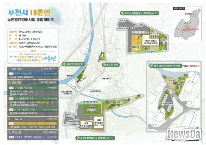 뉴스다 최광묵 기자 | 포천시가 농림축산식품부가 추진한 ‘2025년 농촌공간정비 추가공모사업’에 선정되어, 2029년까지 내촌면 일원에서 추진할 공간정비사업 예산 129억 원을 확보했다.