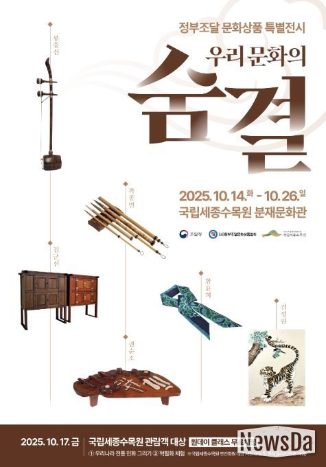 뉴스다 최광묵 기자 | 조달청은 국립세종수목원, (사)정부조달문화상품협회와 함께 10월 14일부터 10월 26일까지 국립세종수목원 분재문화관에서 정부조달 문화상품 전시, 전통문화 체험 등을 즐길 수 있는 ‘우리 문화의 숨결’ 특별전시를 개최한다.