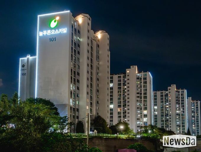 뉴스다 최광묵 기자 | 오산시 관내 아파트(공동주택) 단지들이 오색찬란한 빛으로 물들고 있다.