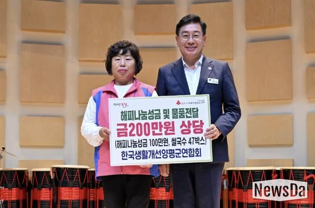 뉴스다 최광묵 기자 | 한국생활개선양평군연합회는 지난 9월 30일부터 10월 1일까지 강릉 한국여성수련원에서 열린 ‘2025년 생활개선양평군연합회 한마음대회’에서 쌀국수 47박스와 현금 100만 원, 총 200만 원 상당의 해피나눔성금을 기탁했다고 밝혔다.