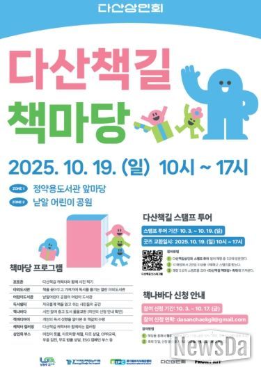 뉴스다 최광묵 기자 | 남양주시 다산동 소재 정약용도서관 앞마당과 낟알 어린이 공원에서 오는 19일 “다산책길 책마당” 행사가 열린다.