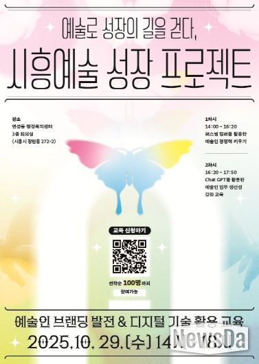 시흥예술 성장 프로젝트는 ‘문화예술 성장 및 예술인 브랜딩 발전’이라는 주제로 1부 퍼스널 컬러 교육과 2부 챗지피티(ChatGPT)를 활용한 디지털 교육으로 나눠 진행된다.