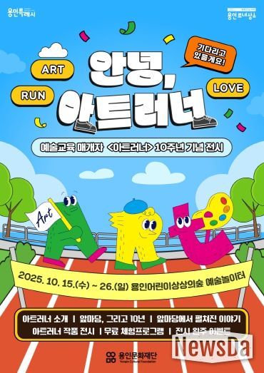 뉴스다 최광묵 기자 | (재)용인문화재단은 예술교육 매개자 ‘아트러너(Art Runner)’ 사업 10주년을 맞아 오는 10월 15일부터 26일까지 용인어린이상상의숲 예술놀이터에서 기념 전시 '안녕, 아트러너'를 개최한다.