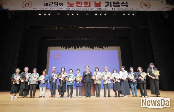 뉴스다 최광묵 기자 | 군포시는 10월 14일 (사)대한노인회 군포시지회 주관으로 군포문화예술회관 수리홀에서 ‘제29회 노인의 날’ 기념식을 개최했다.
