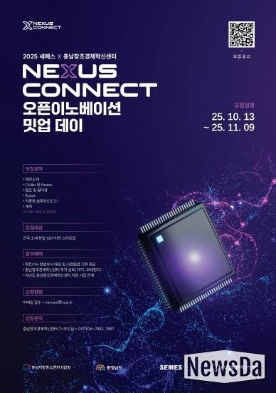 뉴스다 최광묵 기자 | (재)충남창조경제혁신센터와 세메스(주)는 반도체·디스플레이 장비 혁신을 이끌 유망 스타트업을 발굴·육성하기 위해 ‘2025 세메스 × 충남창조경제혁신센터 Nexus Connect 오픈이노베이션 밋업 데이’ 참여 기업을 11월 9일까지 모집한다.