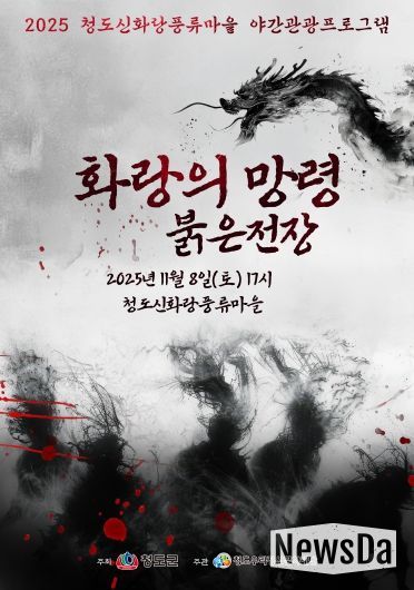 뉴스다 최광묵 기자 | 청도우리정신문화재단(대표이사 기화서)은 오는 11월 8일 오후 5시부터 밤 9시까지, 청도신화랑풍류마을에서 2025 야간관광 프로그램 '화랑의 망령: 붉은전장' 이색 공포체험 프로그램을 운영한다.