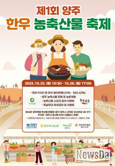 뉴스다 최광묵 기자 | 양주시가 양주축산농협과 공동으로 주최하고, 경기도농수산진흥원 공모사업 지원으로 추진되는 '제1회 양주 한우 농축산물 축제'를 오는 10월 25일부터 26일까지 이틀간 개최한다.