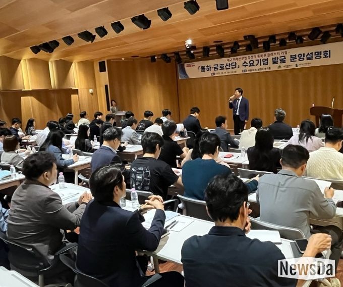 뉴스다 최광묵 기자 | 대구광역시는 대구도시개발공사와 함께 10월 15일 오후, iM뱅크 제2본점에서 ‘율하도시첨단산업단지’와 ‘금호워터폴리스’의 강점과 투자 인센티브를 알리는 ‘수요기업 발굴 분양설명회’를 개최했다.