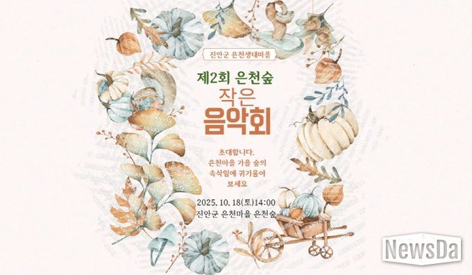 뉴스다 최광묵 기자 | 진안군은 오는 18일 오후 2시~4시까지 은천생태마을 숲에서 ‘두 번째 은천숲 작은 음악회’가 열린다고 밝혔다.