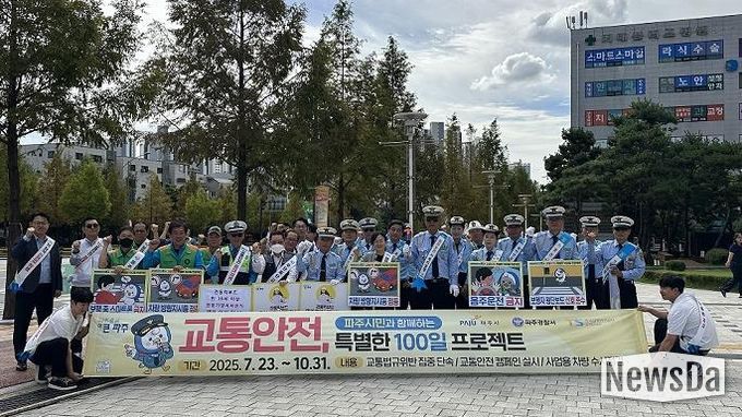 뉴스다 최광묵 기자 | 파주시는 교통사고 사망자 수 30% 감축을 통한 ‘교통안전 선도도시’ 도약을 목표로 지난 7월 23일부터 시민과 함께하는 ‘교통안전, 특별한 100일 프로젝트가 순항 중이라고 밝혔다.