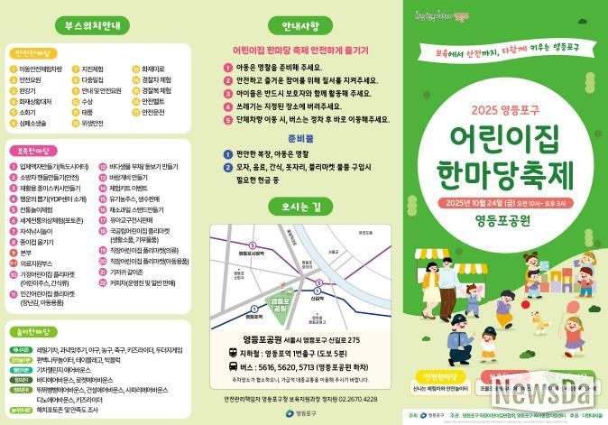 뉴스다 최광묵 기자 | 영등포구가 오는 10월 24일 영등포공원에서 영유아, 학부모, 교직원이 함께 즐기는 ‘2025년 어린이집 한마당 축제’를 개최한다고 밝혔다.