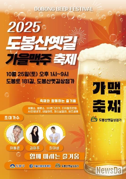 뉴스다 최광묵 기자 | 서울 도봉구가 오는 10월 25일 도봉산옛길 상점가(도봉로 181길 일대)에서 '2025 도봉산옛길 가을맥주축제‘를 개최한다.