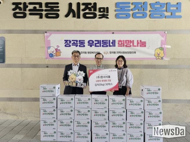 한서식품은 다양한 종류의 한서김치를 판매하는 김치 전문회사로, 지난 2월 장곡동 지역사회보장협의체와 협약을 맺은 이후, 꾸준히 김치를 지원하며 이웃과 함께하는 나눔 기업으로 자리매김하고 있다. 이번 후원은 지난 협약 체결 이후 네 번째로 진행된 나눔으로, 지속적인 선행을 실천하며 시민들의 식생활에 실질적인 도움을 주고 있다.