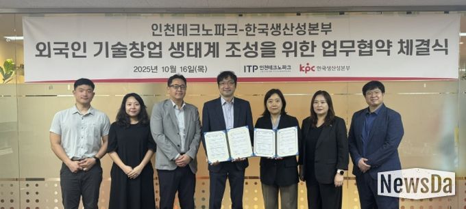 뉴스다 최광묵 기자 | 인천테크노파크는 지난 16일 한국생산성본부와 ‘외국인 창업 활성화 및 창업 생태계 조성을 위한 업무협약(MOU)’을 체결했다.