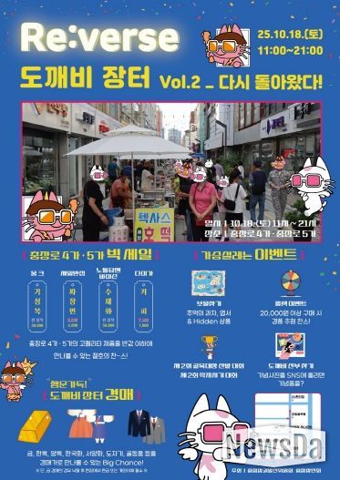 뉴스다 최광묵 기자 | 광주 동구는 오는 18일 충장로 4가 일대(옛 조흥은행 사거리)에서 지역 상권 활성화를 위한 특별한 장터 ‘제2회 RE:VERSE 도깨비장터 IN 충장로’를 개최한다고 밝혔다.