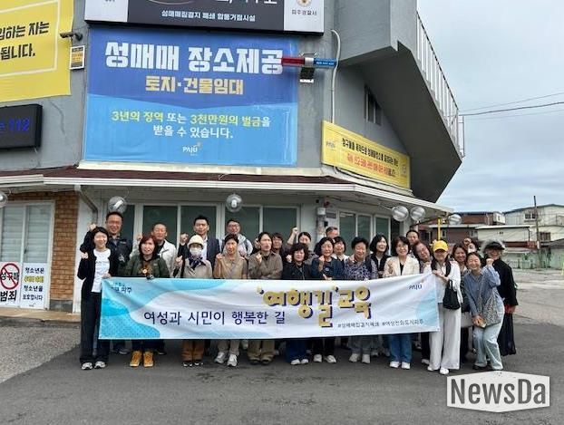 뉴스다 최광묵 기자 | 파주시는 지난 14일, 성매매집결지 내 전람회장 및 거점시설에서 운정2동 통장협의회, ‘클리어링’을 대상으로 ‘여행길 걷기’ 성평등 교육을 진행했다.