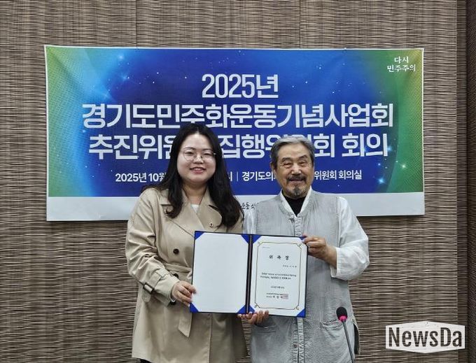 뉴스다 최광묵 기자 | 경기도의회 교육행정위원회 이자형 의원(더불어민주당, 비례)은 10월 16일 오후 2시 경기도의회 교육행정위원회 회의실에서 진행된 '2025년 경기도민주화운동 기념사업 추진현황 보고회'에서 자문위원으로 위촉됐다.