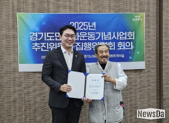 뉴스다 최광묵 기자 | 경기도의회 교육행정위원회 문승호 의원(더불어민주당, 성남1)은 10월 16일 오후 2시 경기도의회 교육행정위원회 회의실에서 진행된 '2025년 경기도민주화운동 기념사업 추진현황 보고회'에서 자문위원으로 위촉됐다.