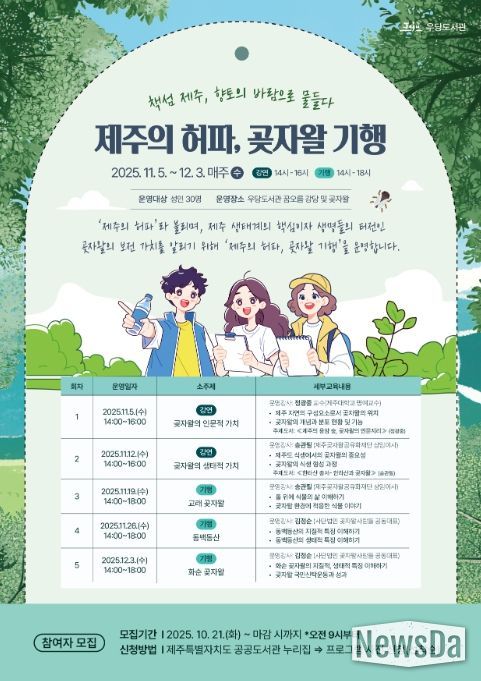 프로그램 참여를 원하는 제주 시민은 10월 21일부터 제주특별자치도 공공도서관 누리집을 통해 선착순 접수하면 된다.