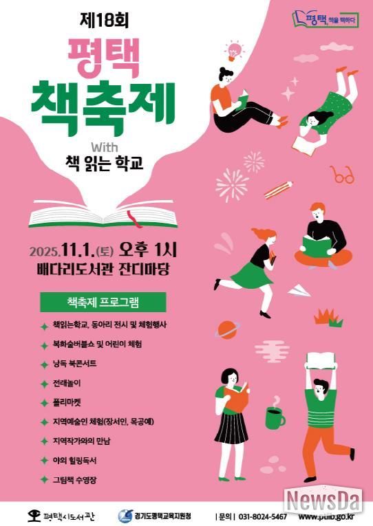 뉴스다 최광묵 기자 | 평택시의 대표 시민독서운동 ‘평택, 책을 택하다’ '2025 평택 책축제 with 책 읽는 학교'가 오는 11월 1일 토요일 오후 1시 배다리도서관 잔디마당에서 개최된다.