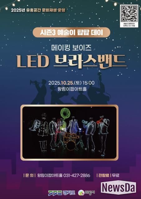 뉴스다 최광묵 기자 | 의왕시는 오는 10월 25일 오후 3시, 왕림이팝아트홀(의왕시 왕곡로 74)에서 금관악기 앙상블과 첨단 엘이디(LED) 조명 기술을 결합한 융복합 공연‘엘이디(LED) 브라스밴드’를 선보인다고 밝혔다.