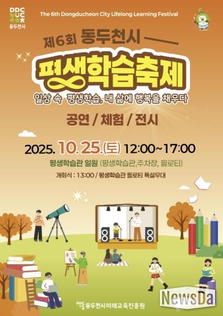 뉴스다 최광묵 기자 | 동두천시는 시민들이 평생학습을 통해 얻은 성과와 즐거움을 나누는 ‘제6회 동두천시 평생학습축제’를 오는 10월 25일(토) 동두천시 평생학습관 일대에서 성대하게 개최한다.
