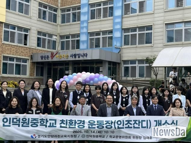 이번에 조성된 인덕원중학교 친환경 운동장은 기존 노후 흙 운동장을 정비하고, 환경 친화적 소재의 인조잔디 및 충진재를 사용해 학생들의 건강과 안전을 고려한 최신 체육시설로 탈바꿈했다.