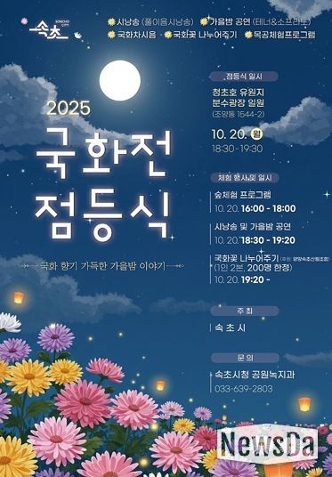 뉴스다 최광묵 기자 | 속초시가 가을 정취를 가득 느낄 수 있는 ‘2025 속초 국화전’을 시작으로 10월 한 달간 다채로운 축제와 문화 행사를 연이어 선보인다.