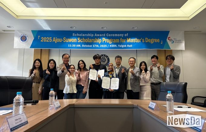 뉴스다 최광묵 기자 | 수원시국제교류센터가 17일 아주대학교 율곡관 제1회의실에서 ‘2025 아주-수원 석사과정 장학증서 수여식’을 열고, 자매·우호도시 출신 유학생들에게 장학증서를 전달했다.