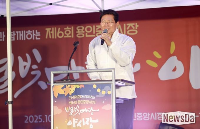 이상일 시장은 축사를 통해 “우리가 봄과 가을에 기다리는 것, 용인의 자랑인 용인중앙시장 별빛야시장이 개장했다”며 “지난해 3일 동안 약 27만명이 방문할 정도로 큰 사랑을 받았는데, 올해에도 더 많은 상인들이 힘을 보태고 더 많은 시민들이 응원해서 중앙시장 야시장이 갈수록 기다려지는 훌륭한 행사로 자리잡았다”고 말했다.