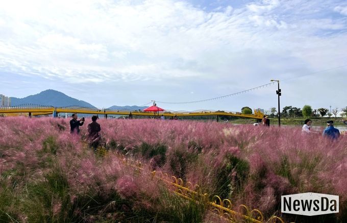 뉴스다 최광묵 기자 | 장성군 황룡강 가을꽃축제 이튿날인 19일, 강변 곳곳마다 활짝 핀 가을꽃들이 방문객을 반기고 있다. 특히 용작교, 황룡정원 방면 백일홍과 연꽃정원 코스모스, 문화대교 인근 핑크뮬리가 아름답다.