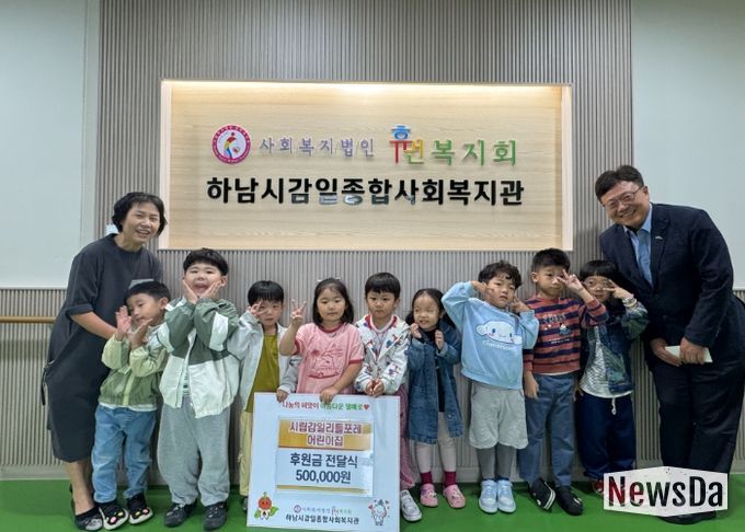 뉴스다 최광묵 기자 | 시립감일리틀포레어린이집은 지난 10월 14일 하남시감일종합사회복지관(사회복지법인 휴먼복지회 운영)에 후원금을 전달했다.