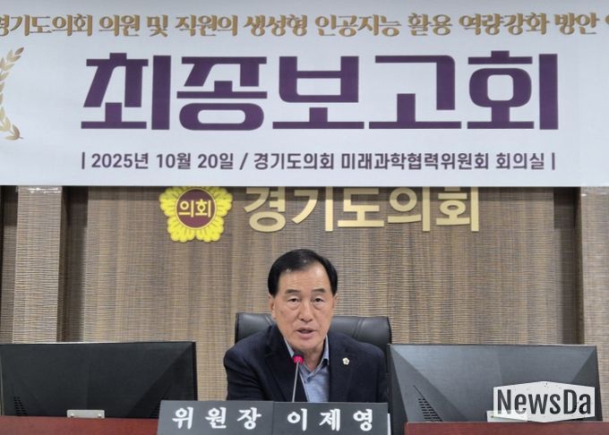 뉴스다 최광묵 기자 | 경기도의회 미래과학협력위원회는 10월 20일, 도의회 위원회 회의실에서 『경기도의회 의원 및 직원의 생성형 인공지능 활용 역량강화 방안 연구』에 대한 최종보고회를 개최했다.