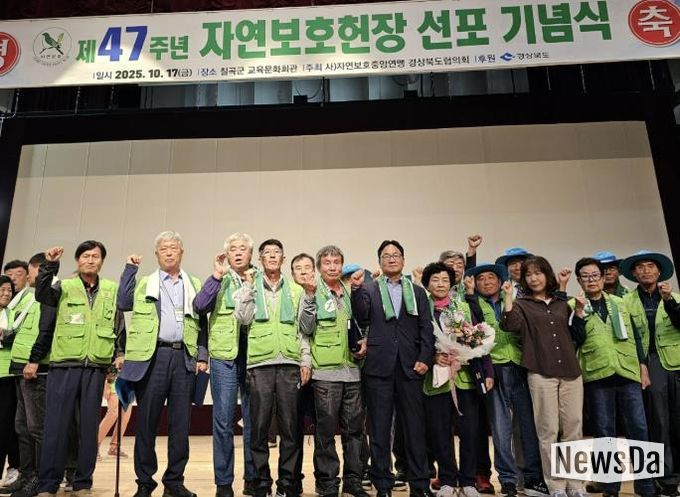 뉴스다 최광묵 기자 | 상주시자연보호협의회 회원 3명이 10월 17일 ‘제47주년 자연보호헌장 선포 기념식’에서 환경보전에 기여한 공로를 인정받아 표창을 수상했다.