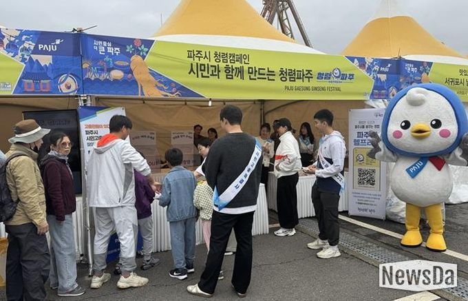 뉴스다 최광묵 기자 | 파주시는 지난 18일 파주시 임진각 일원에서 개최된 ‘제20회 파주개성인삼축제’ 축제장에서 청렴 홍보활동을 실시했다고 밝혔다.